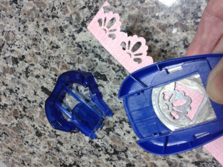 Recorte uma tira de 3cm no papel preto e de 2cm no papel rosa.