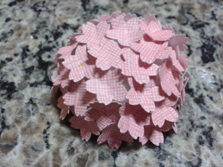 Com o furador mini flor faça várias flores e cole sobre a metade da bola de isopor.