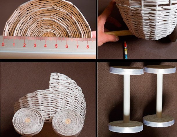 Lindos Carrinhos de bebês em miniatura com jornal reciclado!