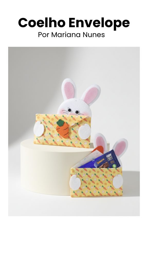 O Coelho Envelope, ensinado por Mariana Nunes, é uma peça simples, mas cheia de charme. Com criatividade e capricho, ele se transforma em uma linda lembrancinha para presentear na Páscoa.
