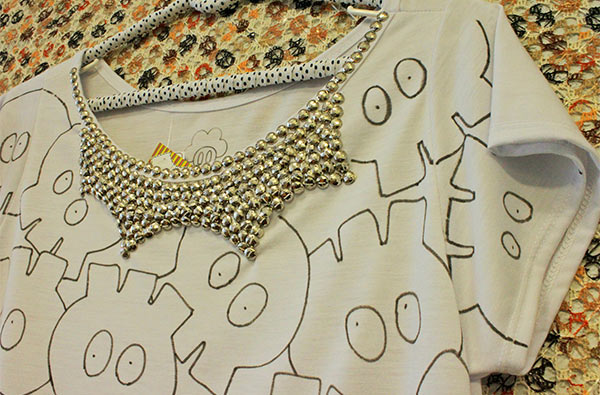 A marca trabalha com pintura manual e customização das peças: corte diferenciado, pregar botão e costurar golas. Abaixo imagens das peças já criadas por Luane Brandão.