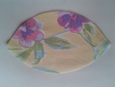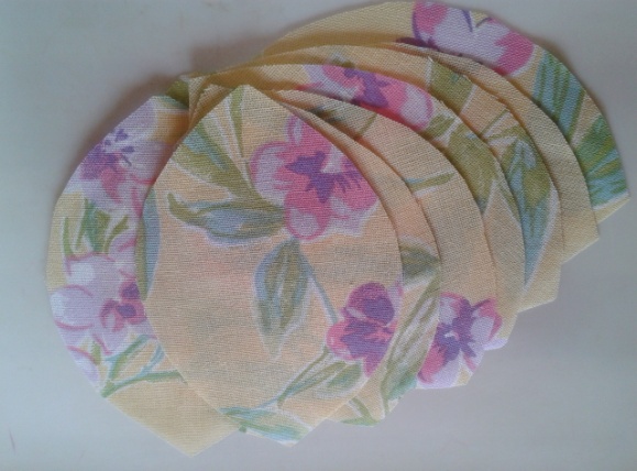 1- Faça um molde na cartolina na medida de 0,08 X 0,13 cm.2- Risque 10 pétalas para os fuxicos de rosa no avesso do tecido.